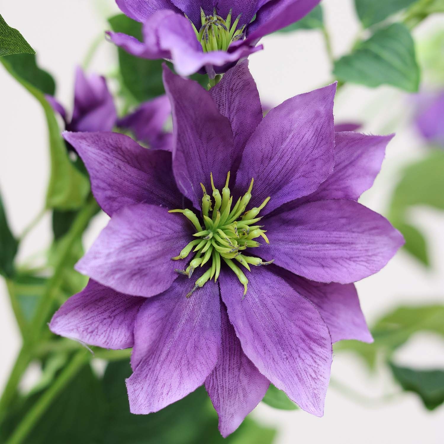 Ben jij op zoek naar een duurzaam alternatief voor gewone bloemen, waarbij de gedetailleerde structuur zo goed mogelijk benaderd wordt? Dan zijn de kunststelen van FloraWorks perfect voor jou! Wij selecteren onze zijden bloemen namelijk op basis van kwaliteit en uitstraling. Deze Clematis kunststeel heeft paarse bloemen en kan zowel als los item of in een zijden boeket gebruikt worden. Voor het samenstellen van een mooi kunstboeket hebben we de volgende tips & tricks. Ben je daarnaast nog op zoek naar een bijpassende vaas voor jouw kunstbloemen? Neem dan een kijkje in onze collectie vazen.