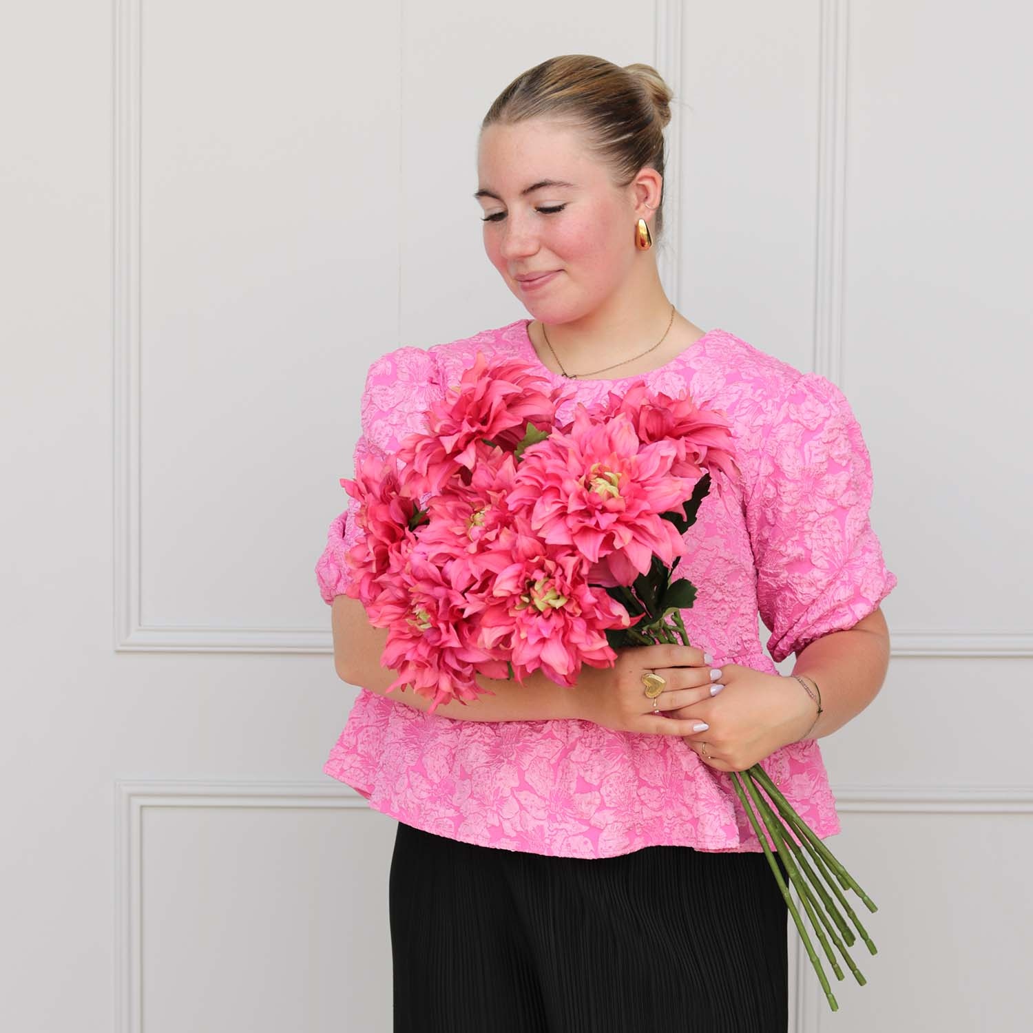 Ben jij op zoek naar een duurzaam alternatief voor gewone bloemen, waarbij de gedetailleerde structuur zo goed mogelijk benaderd wordt? Dan zijn de kunststelen van FloraWorks perfect voor jou! Wij selecteren onze zijden bloemen namelijk op basis van kwaliteit en uitstraling. Deze Dahlia kunststeel heeft een roze bloem en kan zowel als los item of in een zijden boeket gebruikt worden. Voor het samenstellen van een mooi kunstboeket hebben we de volgende tips & tricks. Ben je daarnaast nog op zoek naar een bijpassende vaas voor jouw kunstbloemen? Neem dan een kijkje in onze collectie vazen.