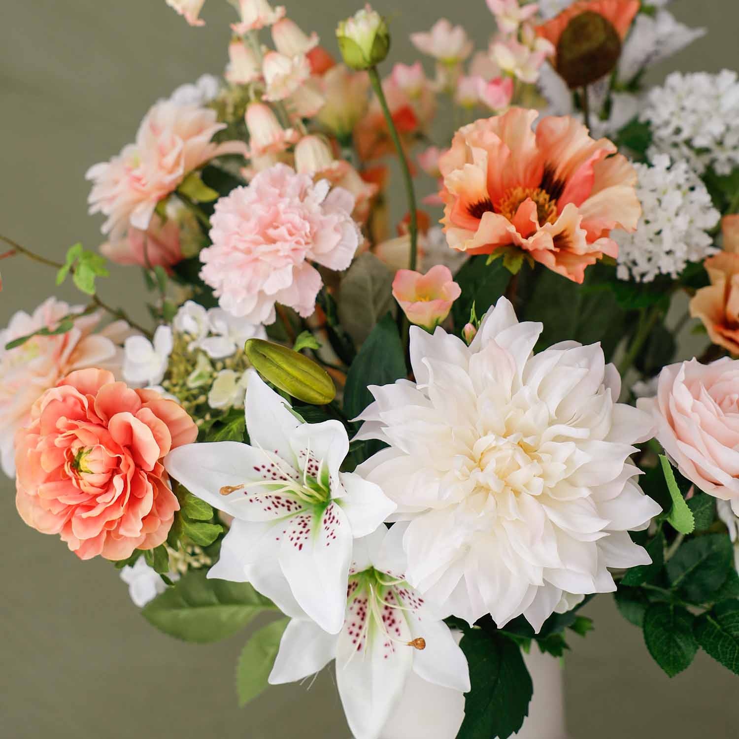 Ben jij op zoek naar een duurzaam alternatief voor gewone bloemen, waarbij de gedetailleerde structuur zo goed mogelijk benaderd wordt? Dan zijn de kunststelen van FloraWorks perfect voor jou! Wij selecteren onze zijden bloemen namelijk op basis van kwaliteit en uitstraling. Deze Dahlia kunststeel heeft een witte bloem en kan zowel als los item of in een zijden boeket gebruikt worden. Voor het samenstellen van een mooi kunstboeket hebben we de volgende tips & tricks. Ben je daarnaast nog op zoek naar een bijpassende vaas voor jouw kunstbloemen? Neem dan een kijkje in onze collectie vazen.