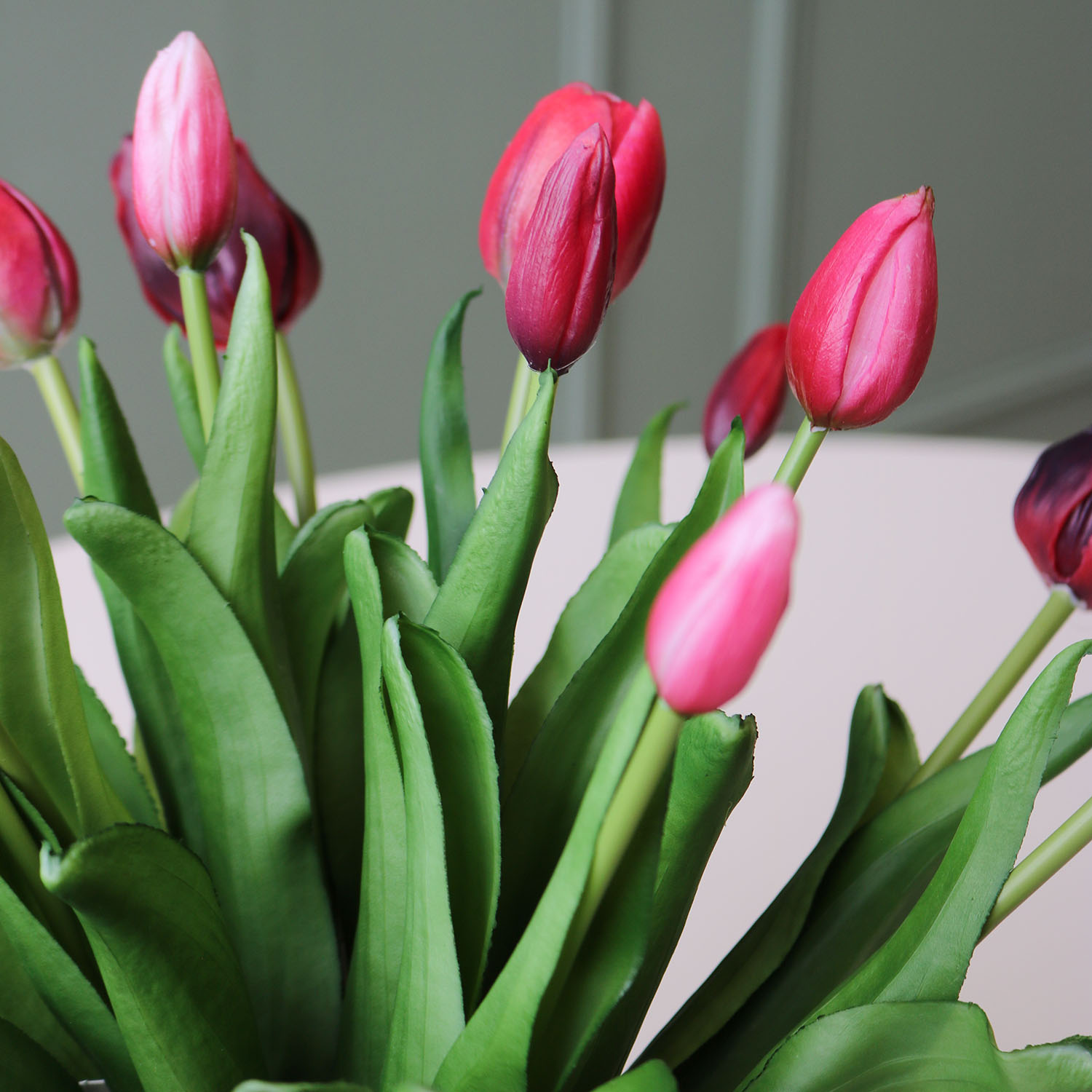 Ben jij op zoek naar een duurzaam alternatief voor gewone bloemen, waarbij de gedetailleerde structuur zo goed mogelijk benaderd wordt? Dan zijn de kunststelen van FloraWorks perfect voor jou! Wij selecteren onze zijden bloemen namelijk op basis van kwaliteit en uitstraling. Deze tulpenbundel met rode en paarse bloemen is perfect als los item, maar kan ook goed gecombineerd worden met de andere kleuren van deze kunststeel tot een groter tulpenboeket. Ben je nog op zoek naar een bijpassende vaas voor jouw kunstbloemen? Neem dan een kijkje in onze collectie vazen.
