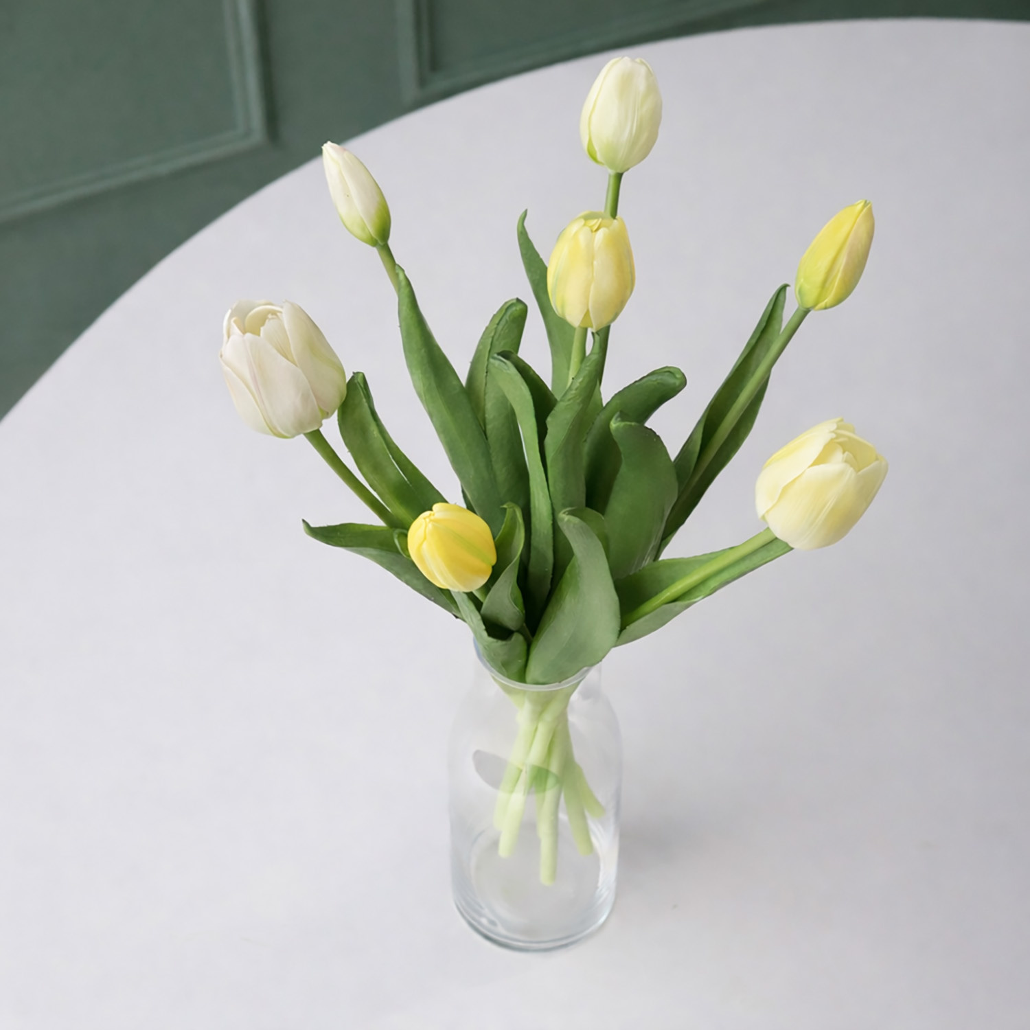 Ben jij op zoek naar een duurzaam alternatief voor gewone bloemen, waarbij de gedetailleerde structuur zo goed mogelijk benaderd wordt? Dan zijn de kunststelen van FloraWorks perfect voor jou! Wij selecteren onze zijden bloemen namelijk op basis van kwaliteit en uitstraling. Deze tulpenbundel met witte en gele bloemen is perfect als los item, maar kan ook goed gecombineerd worden met de andere kleuren van deze kunststeel tot een groter tulpenboeket. Ben je nog op zoek naar een bijpassende vaas voor jouw kunstbloemen? Neem dan een kijkje in onze collectie vazen.