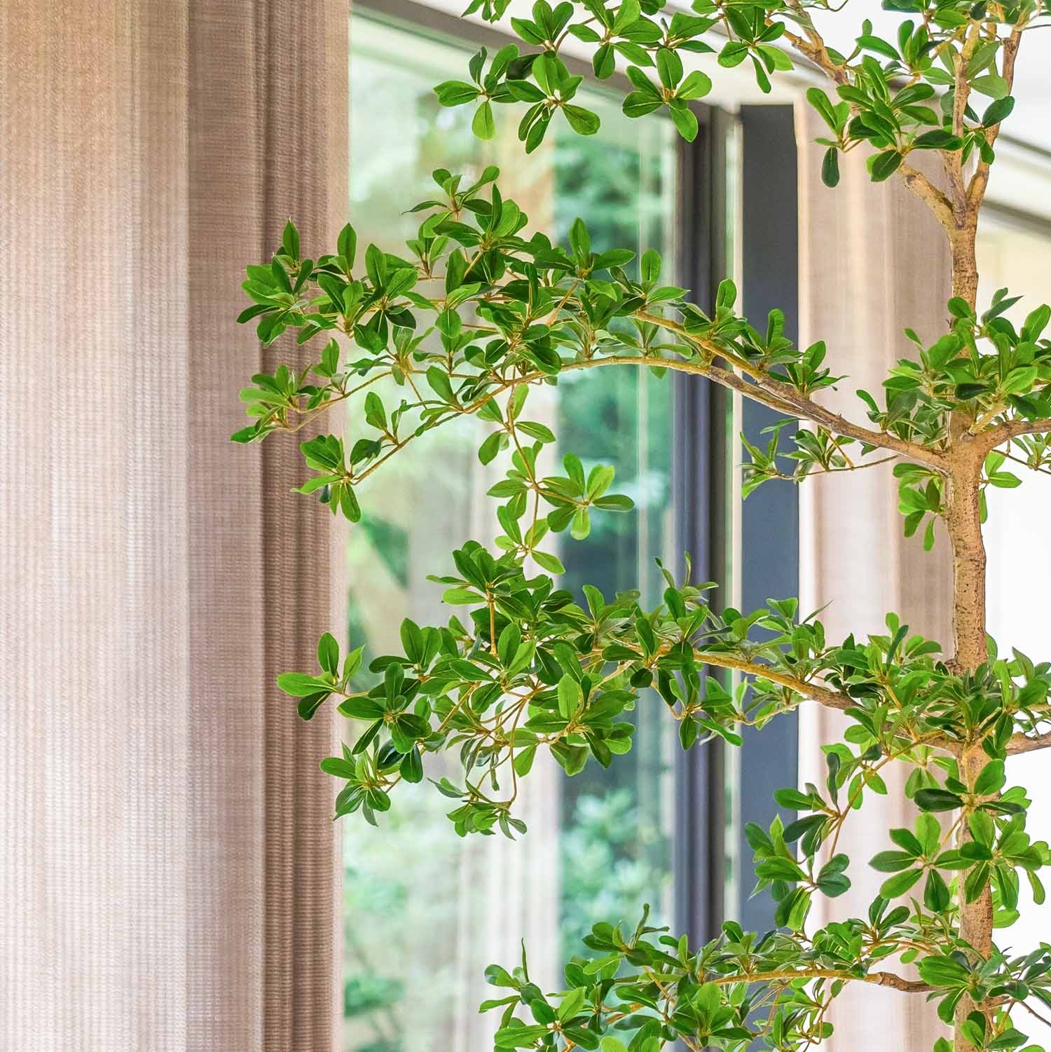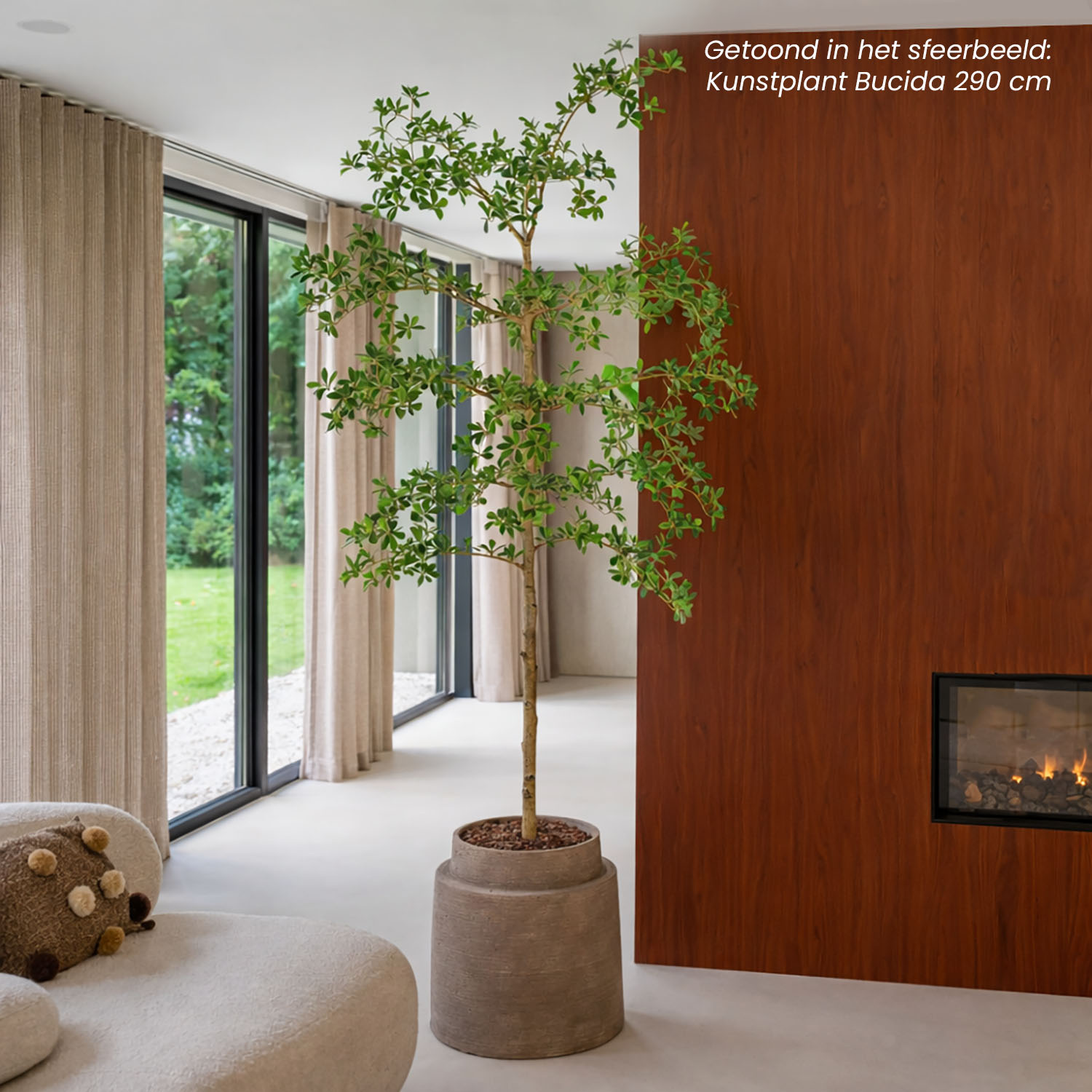 Ben jij op zoek naar een duurzaam alternatief voor gewone planten, waarbij de gedetailleerde structuur zo goed mogelijk benaderd wordt? Dan zijn de kunstplanten van FloraWorks perfect voor jou! Wij selecteren onze kunstplanten namelijk op basis van kwaliteit en uitstraling. Deze Bucida kunstplant heeft een luchtige opbouw en past perfect binnen een Japandi sfeer of hotel-chique interieur. Door zijn imposante formaat is deze kunstboom bijzonder geschikt als statement voor een lobby, entree of kantoortuin.