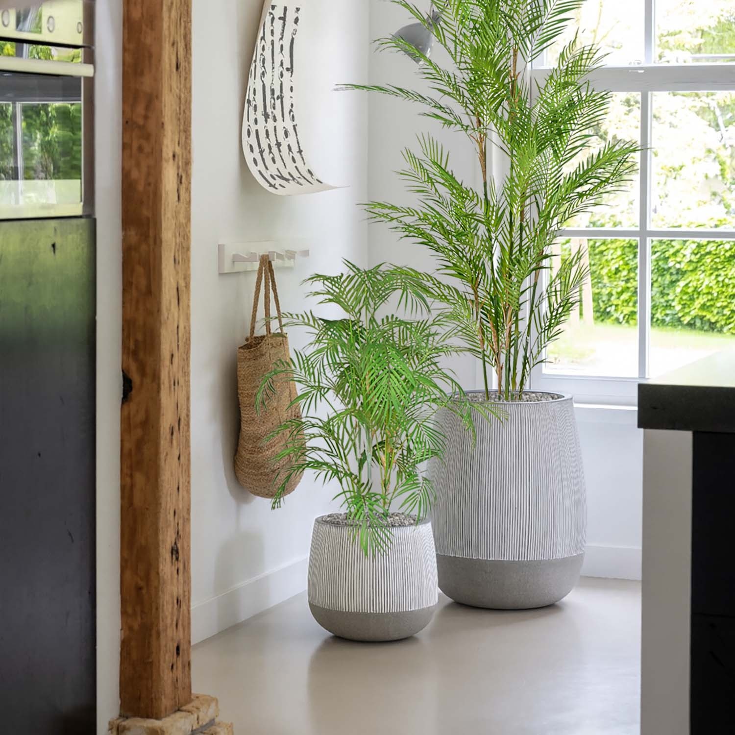 Deze kunstplant wordt geleverd inclusief een plastic binnenpot. We adviseren om de kunstplant in één van de buitenpotten te plaatsen, welke wij speciaal voor deze kunstplant als bijpassend product hebben geselecteerd. Uiteraard is het ook mogelijk om onze gehele collectie potten te bekijken. Voor een stevige bevestiging kan gebruik worden gemaakt van een piepschuim mal, maar ook gewone aarde volstaat.