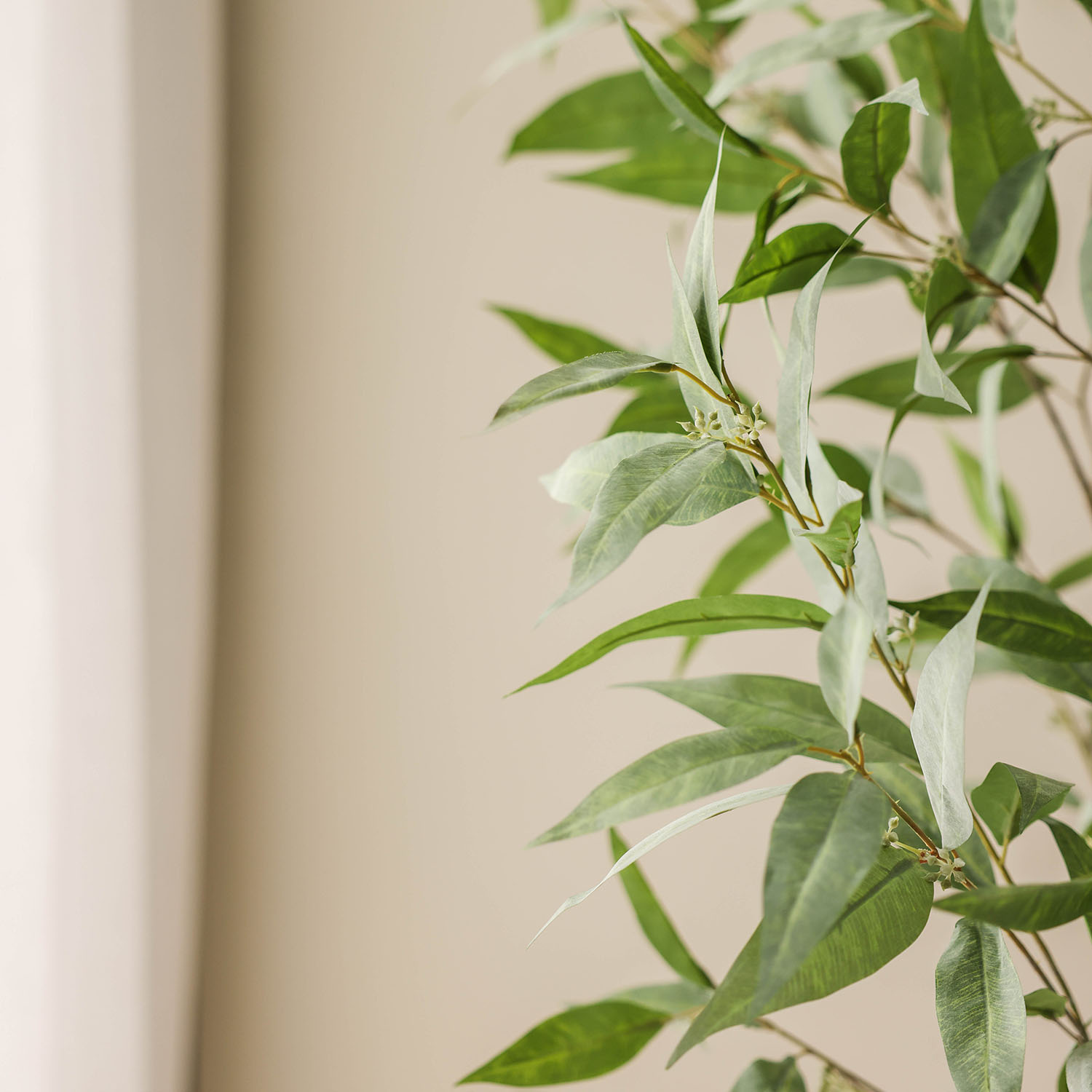 Ben jij op zoek naar een duurzaam alternatief voor gewone planten, waarbij de gedetailleerde structuur zo goed mogelijk benaderd wordt? Dan zijn de kunstplanten van FloraWorks perfect voor jou! Wij selecteren onze kunstplanten namelijk op basis van kwaliteit en uitstraling. Deze Eucalyptus kunstplant heeft een luchtige vertakking en kenmerkende, grijsgroene bladeren. De realistische stam en de natuurgetrouwe bladeren zorgen ervoor dat de plant nauwelijks van echt te onderscheiden is en dankzij de rustgevende en frisse uitstraling past hij perfect in een modern of Scandinavisch interieur.