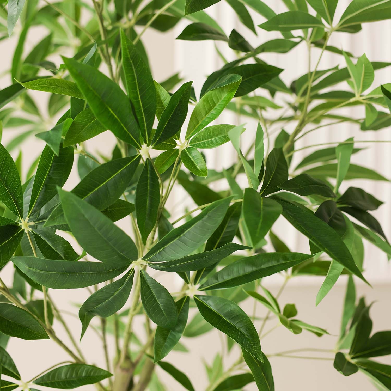 Ben jij op zoek naar een duurzaam alternatief voor gewone planten, waarbij de gedetailleerde structuur zo goed mogelijk benaderd wordt? Dan zijn de kunstplanten van FloraWorks perfect voor jou! Wij selecteren onze kunstplanten namelijk op basis van kwaliteit en uitstraling. Deze Pachira kunstplant, ook wel bekend als geldboom, heeft natuurgetrouwe, handvormige bladeren en een robuuste stam met subtiel kleurverloop. Als kamerplant past hij zowel in moderne als meer natuurlijke interieurs, van woonkamer tot kantoor.