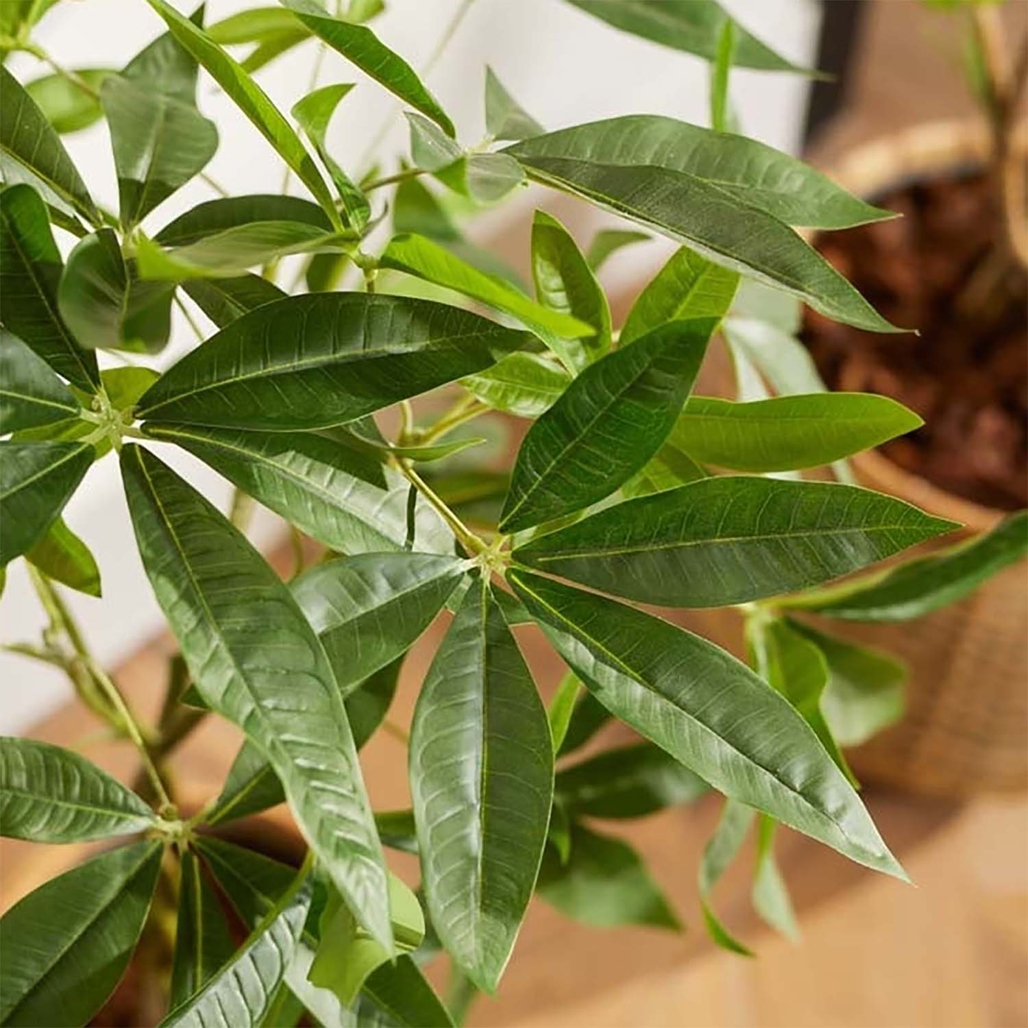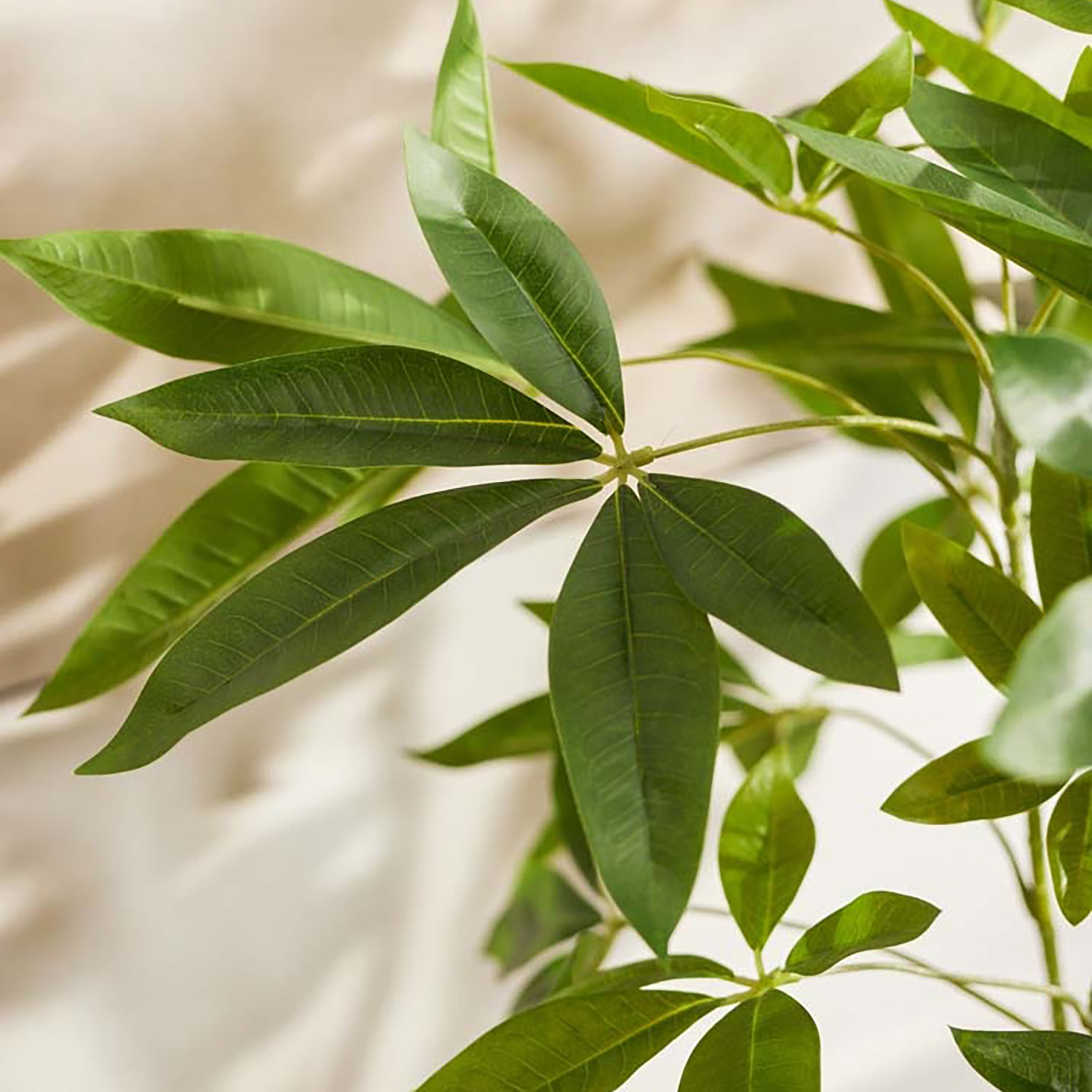 Ben jij op zoek naar een duurzaam alternatief voor gewone planten, waarbij de gedetailleerde structuur zo goed mogelijk benaderd wordt? Dan zijn de kunstplanten van FloraWorks perfect voor jou! Wij selecteren onze kunstplanten namelijk op basis van kwaliteit en uitstraling. Deze Pachira kunstplant, ook wel bekend als geldboom, heeft natuurgetrouwe, handvormige bladeren en een robuuste stam met subtiel kleurverloop. Als kamerplant past hij zowel in moderne als meer natuurlijke interieurs, van woonkamer tot kantoor.