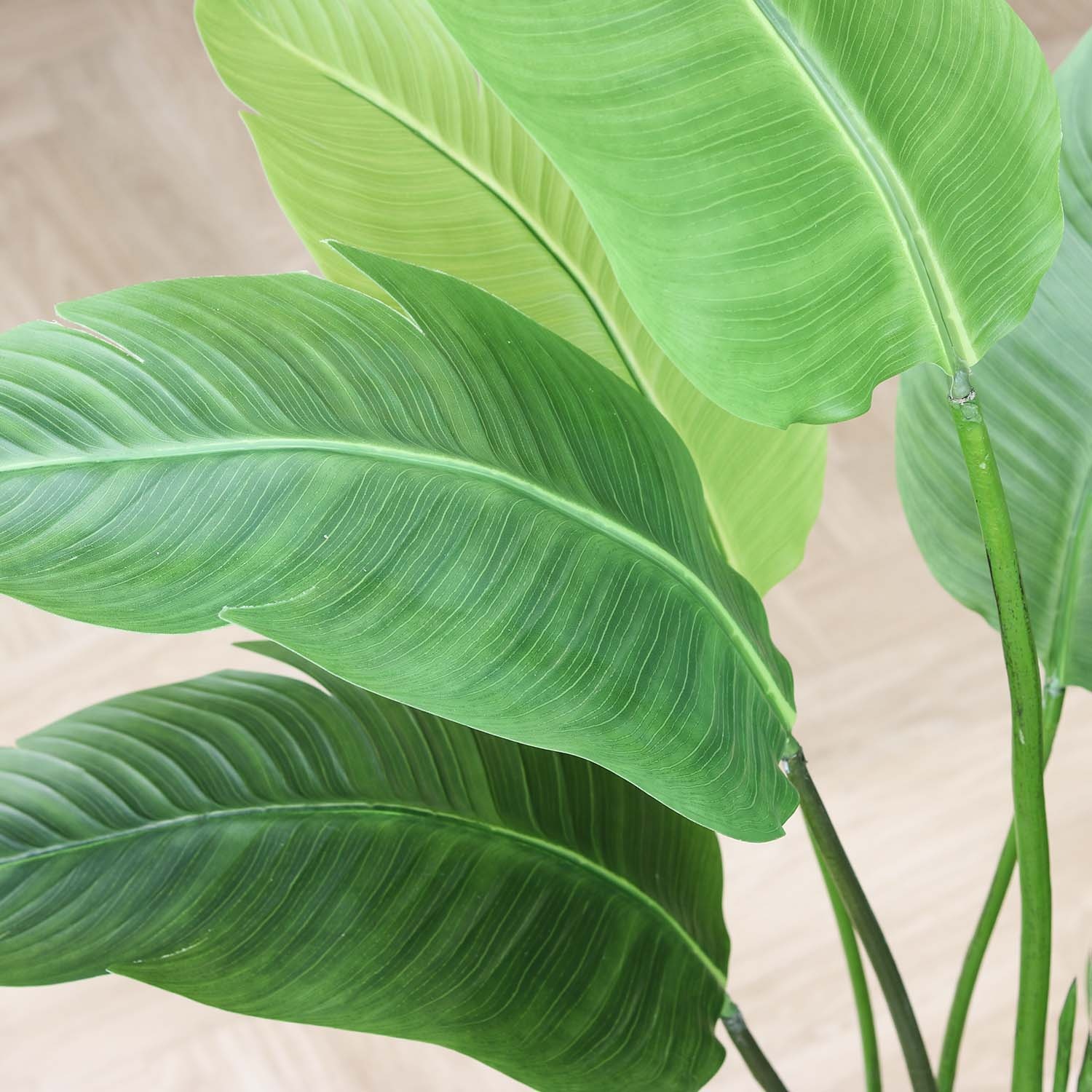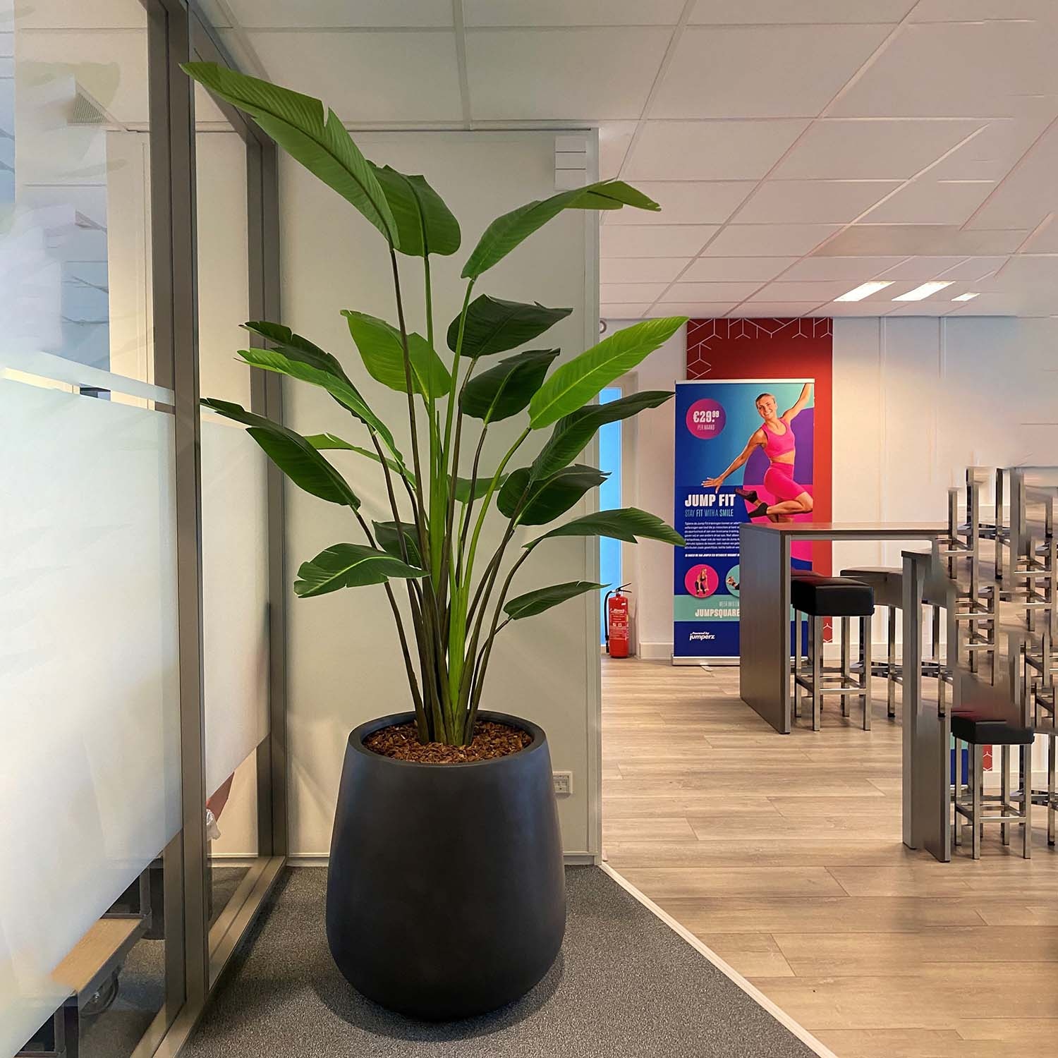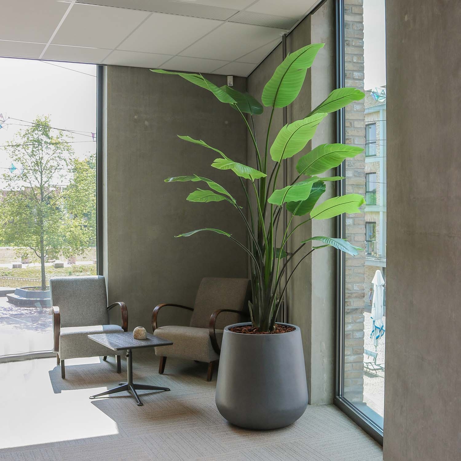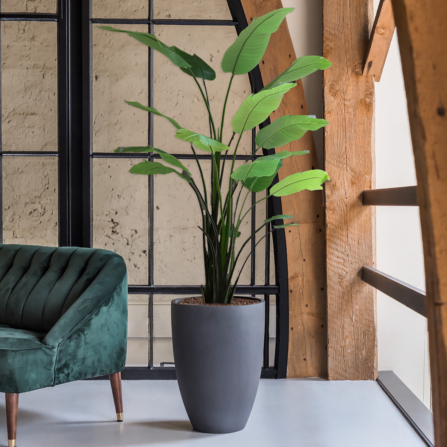 Ben jij op zoek naar een duurzaam alternatief voor gewone planten, waarbij de gedetailleerde structuur zo goed mogelijk benaderd wordt? Dan zijn de kunstplanten van FloraWorks perfect voor jou! Wij selecteren onze kunstplanten namelijk op basis van kwaliteit en uitstraling. Deze Strelitzia Nicolai kunstplant, ook bekend als paradijsvogelplant, is een imposante verschijning met een tropische flair. De grote bladeren waaieren speels omhoog en voegen direct volume en elegantie toe aan een ruimte. Of je haar nu plaatst in een ruime woonkamer, een modern kantoor of een hotellobby, deze kunstplant is een ware blikvanger.
