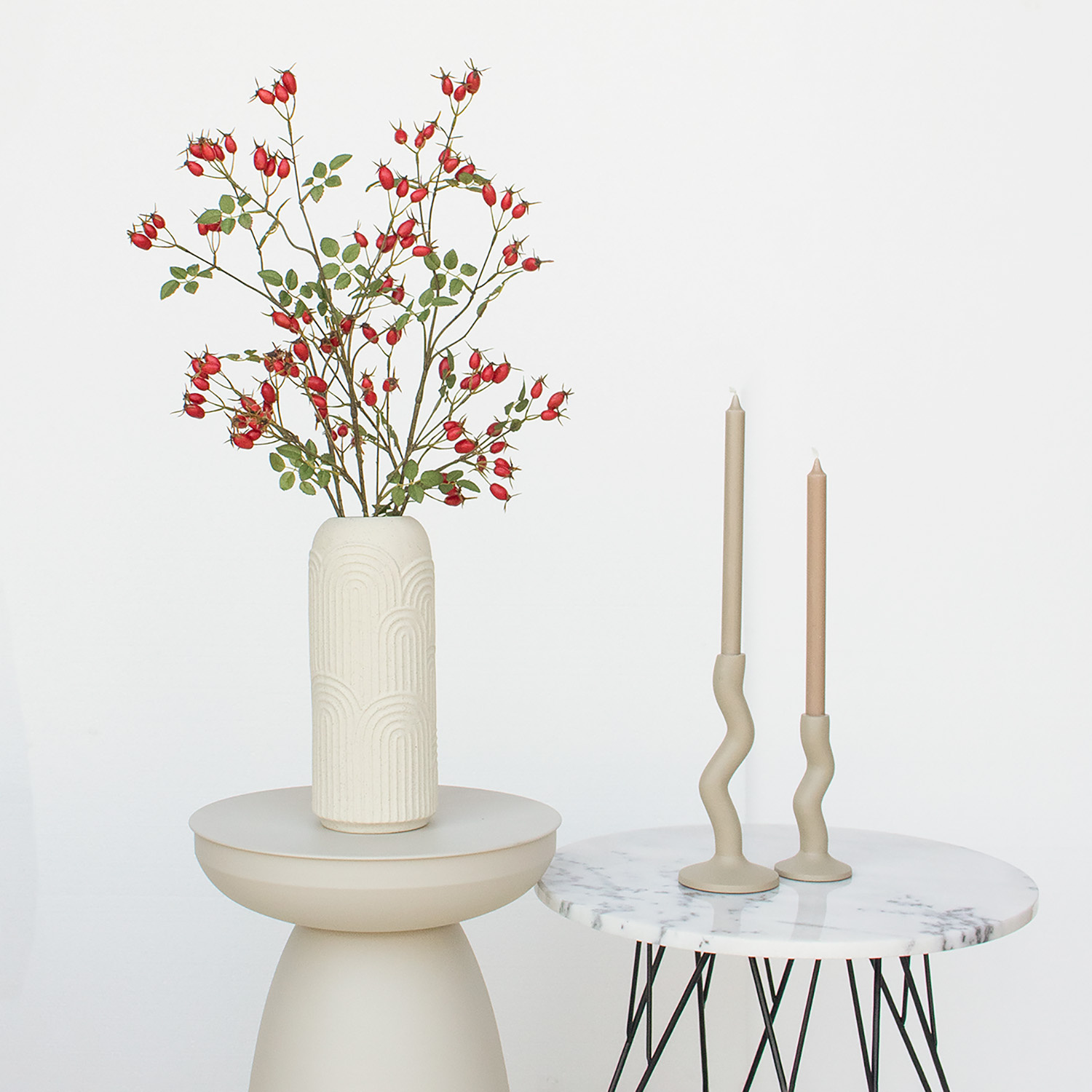 Ben jij op zoek naar een duurzaam alternatief voor gewone bessentakken, waarbij de gedetailleerde structuur zo goed mogelijk benaderd wordt? Dan zijn de kunststelen van FloraWorks perfect voor jou! Wij selecteren onze zijden bloemen en kunstbessen namelijk op basis van kwaliteit en uitstraling. Deze kunsttak met rode Rozenbottel bessen kan zowel als los item of in een zijden boeket gebruikt worden. Voor het samenstellen van een mooi kunstboeket hebben we de volgende tips & tricks. Ben je daarnaast nog op zoek naar een bijpassende vaas voor jouw kunstbloemen? Neem dan een kijkje in onze collectie vazen.