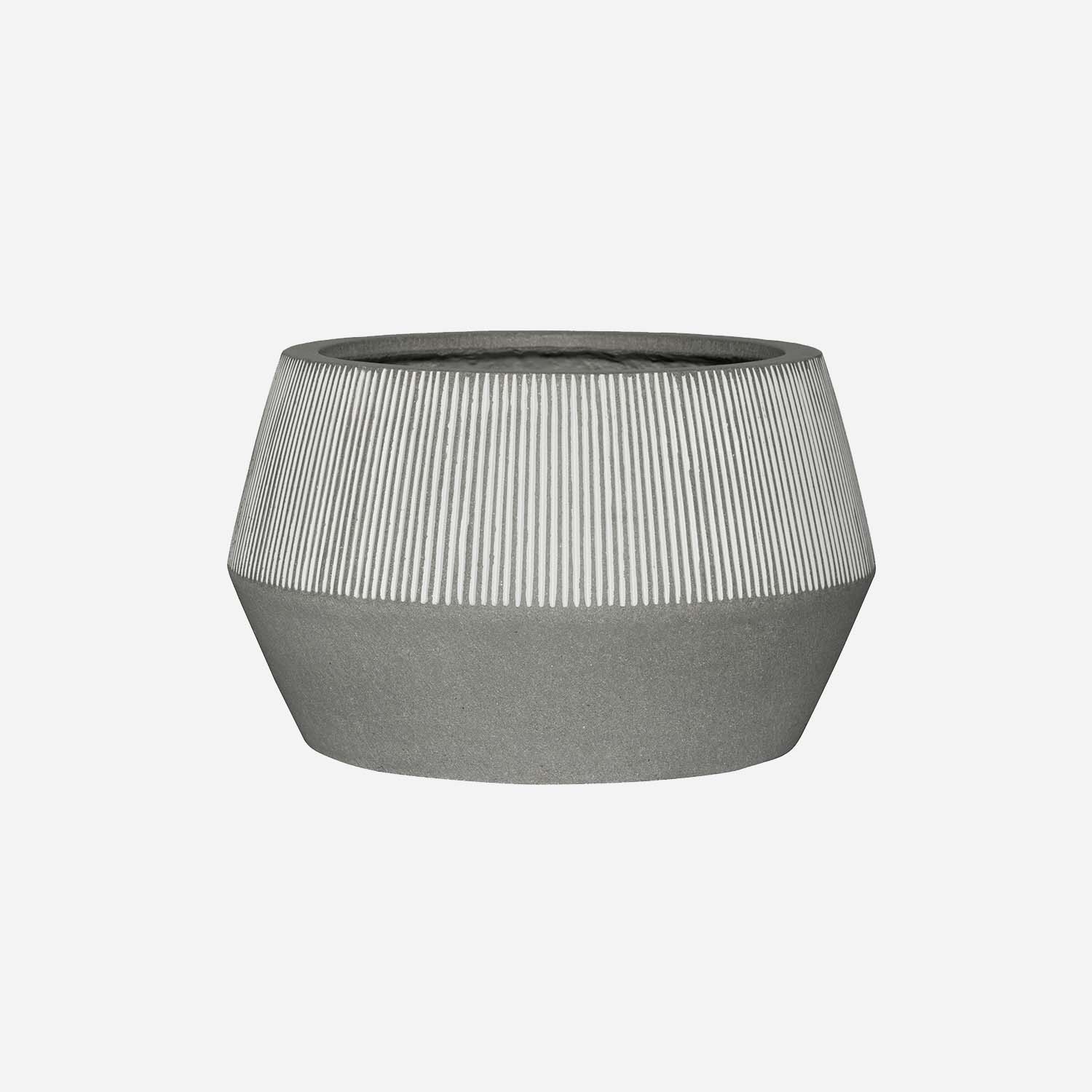 Beoordeel Ficonstone pot Harley laag witgrijs gestreept (36 x 21,5 cm)