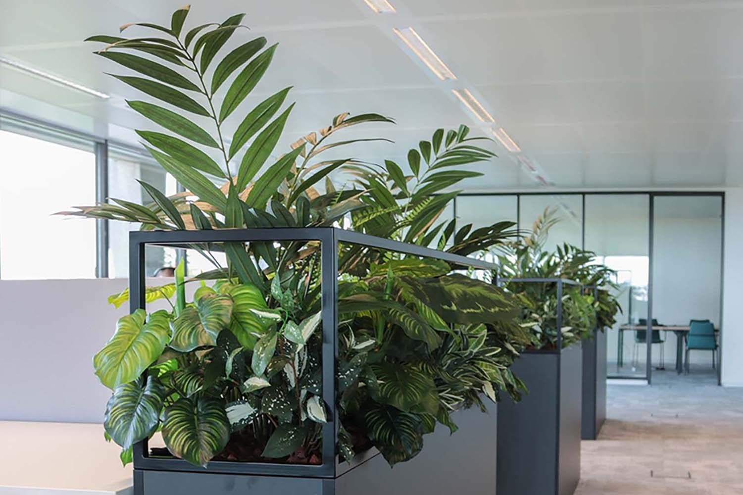 Voor het nieuwe kantoor van Aixtron op de Brightlands Smart Services Campus in Heerlen verzorgden we een stijlvolle kantoorbeplanting met duurzame kunstplanten. Vanaf één van de bovenste verdiepingen kijkt het team uit over een prachtig panorama. Een inspirerende plek die we verder tot leven brachten met groen.