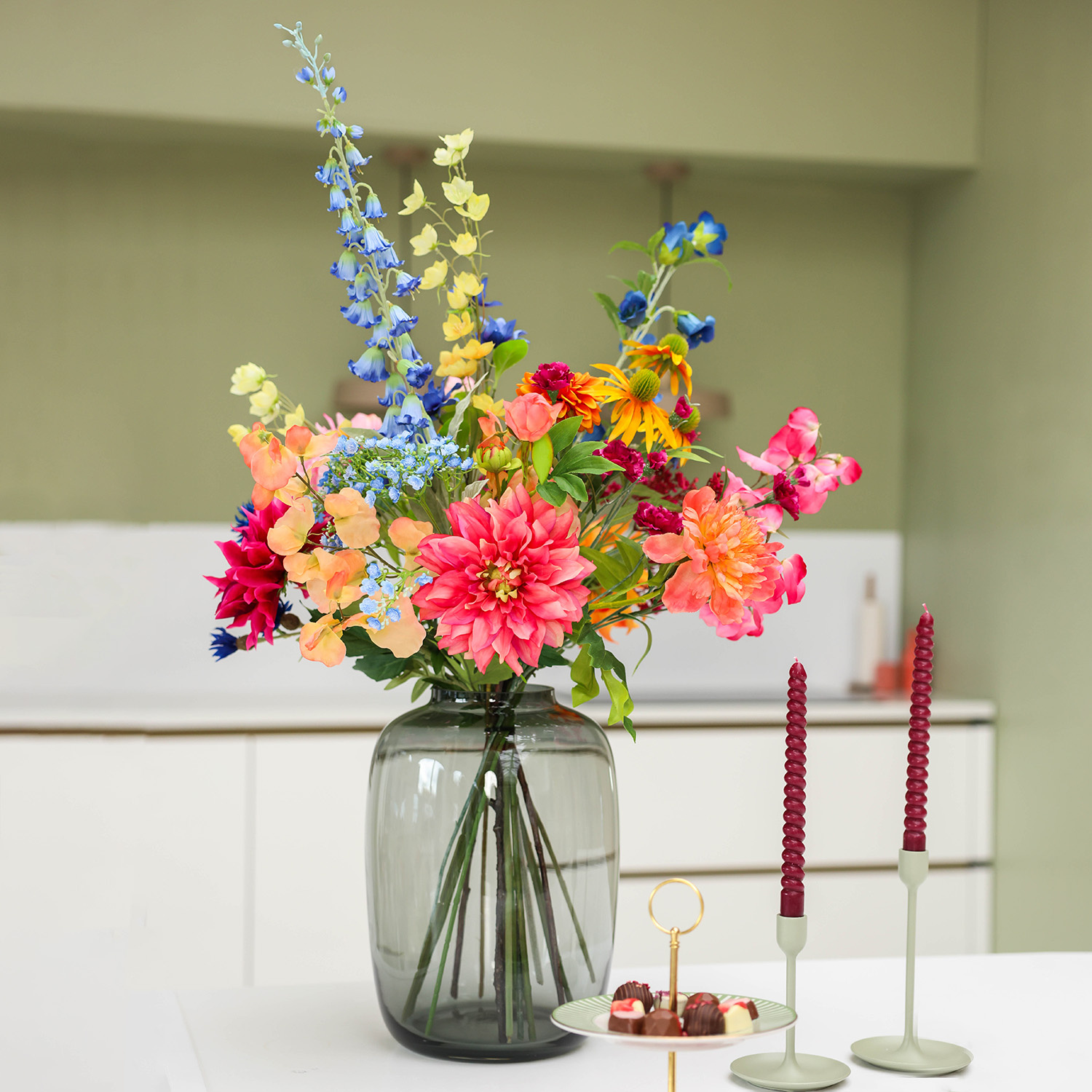 Ben je nog op zoek naar mooie zijden bloemen voor in de vaas? Neem dan een kijkje in onze uitgebreide collecties kunstboeketten of losse kunststelen.